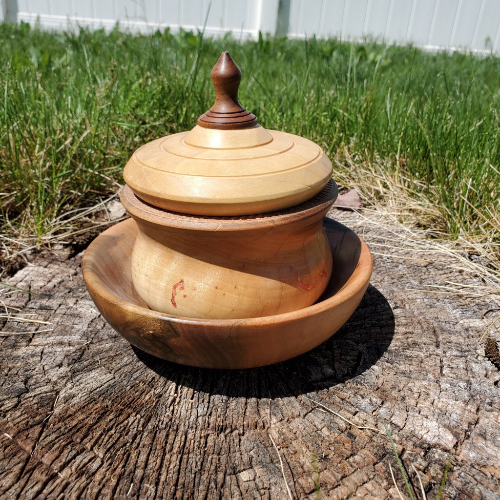 However, the tree’s life wasn’t taken in vain. Folks came to pick up the wood for projects and firewood. A bowl and vessel (photographs taken by our maternal uncle, Drew Bartholomew) were made by a neighbor to honor the memory of our grandfather and the walnut tree.